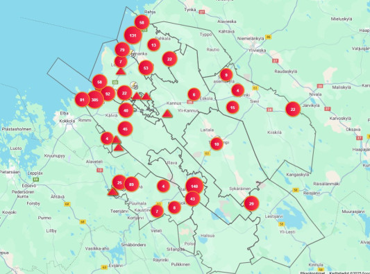 Sähkönjakeluhäiriöiden korjaustilannetta pyydämme seuraamaan kotisivuiltamme löytyvältä reaaliaikaiselta keskeytyskartalta osoitteessa: