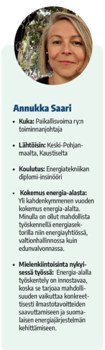 – Tehtävänämme on varmistaa, että paikalliset energiayhtiöt voivat toimia vakaassa ja ennakoitavassa toimintaympäristössä, jossa tunnistetaan niiden rooli vihreän siirtymän, alueellisen elinvoiman ja huoltovarmuuden edistäjinä, kertoo toiminnanjohtaja Annukka Saari.